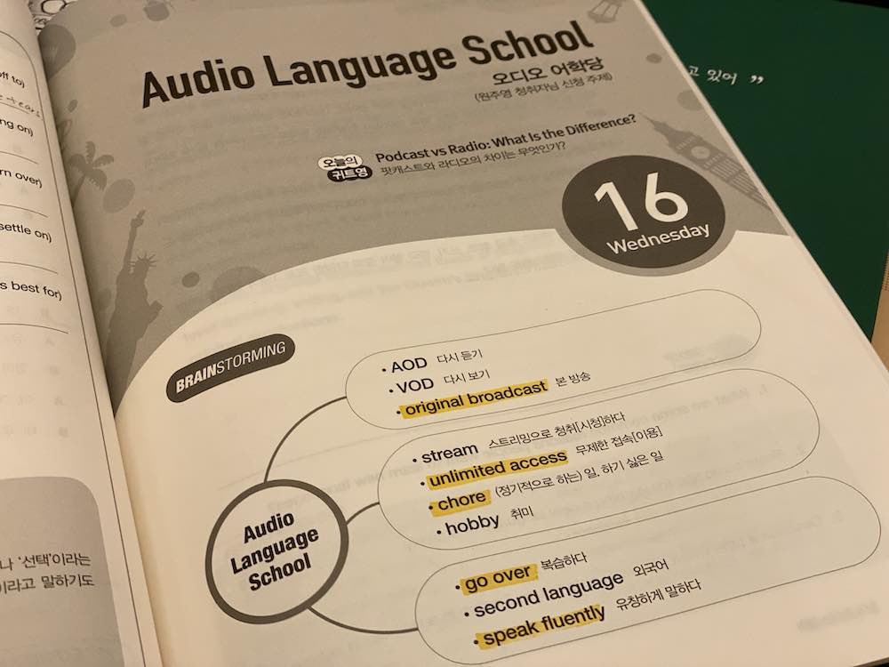 Audio language school is a service that can listen 70 types of broadcasts if you pay 4,900 won monthly. I mostly tend to listen to 입트영 and 귀트영. 입트영 is a program that is practicing English speaking with listeners' stories they posted online. I love this program because I can study with theme which is so funny and real.